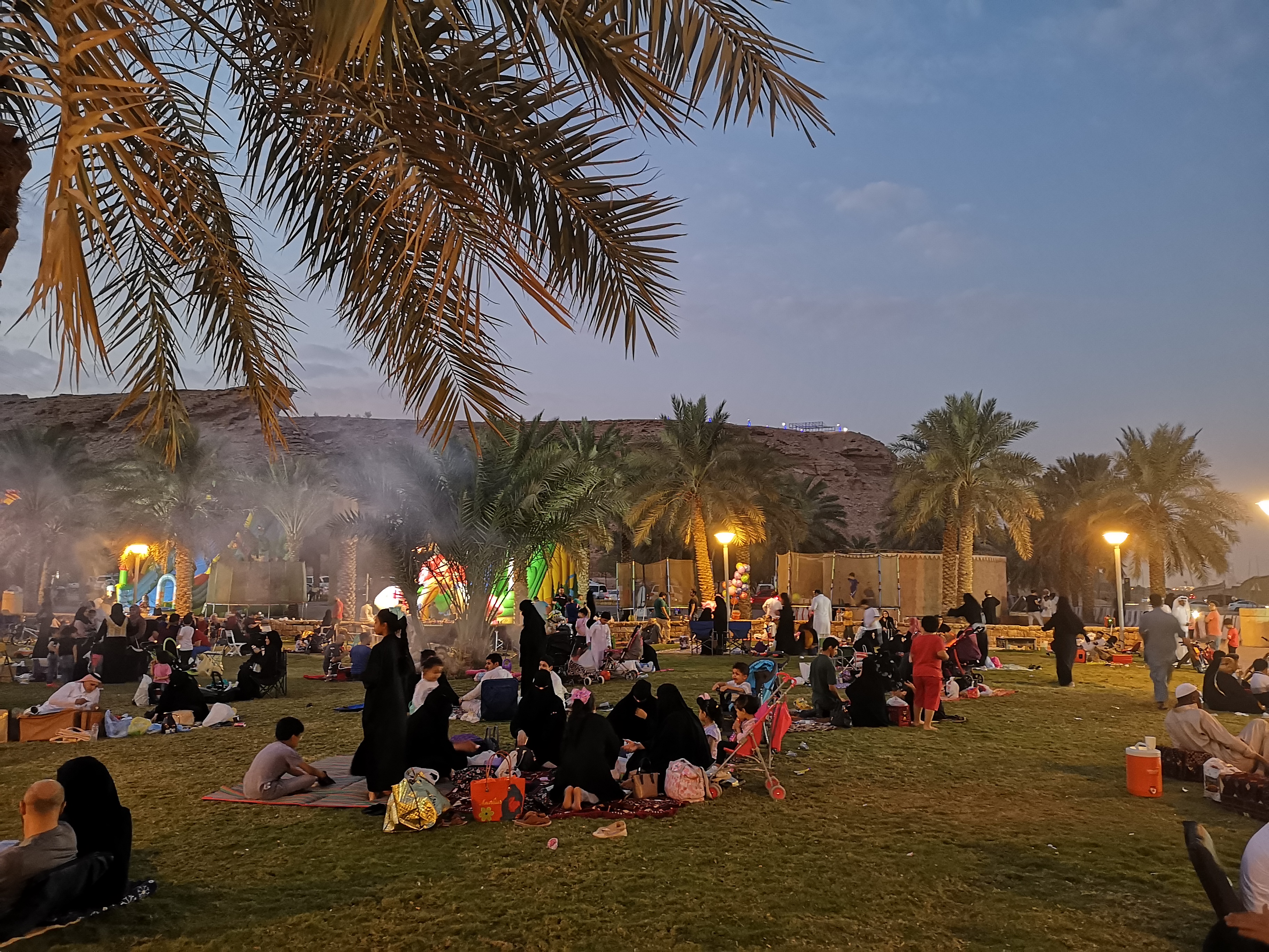 Yet, amidst the evolving landscape, some habits remain slow to change. Rooted in a nomadic past, the act of sitting on the ground endures. Traditional Saudi meals are laid out on carpets, families gather on the ground at parks, maintaining a certain distance for privacy. Even past midnight, parks are filled with people, presenting a unique response to battling the heat: utilizing outdoor spaces at night. The contrast between day and night in public spaces is striking.